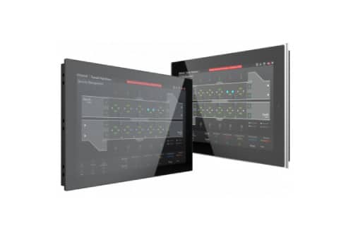 - Monitor industriali touchscreen: collegabili a un pc industriale interno al quadro o a un plc, incluso il pc fanless, per la sola supervisione dei processi. Sono disponibili in diverse dimensioni standard, che vanno dal 7″ al 24″, mentre altre sono disponibili su richiesta.